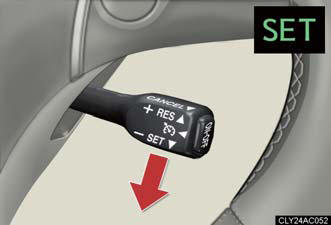 Accelerate or decelerate to the desired speed and press the lever down to set the cruise control speed.