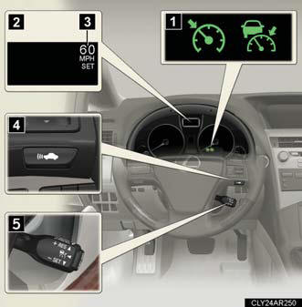 (Push the lever forward and hold for approximately one second.) Constant speed control mode indicator will come on.