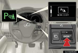 2. Press the “ENTER” switch upwards or downwards until the intuitive parking assist mark appears in the multiinformation display.